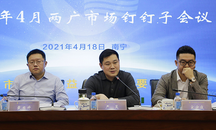 4月18日下昼,,,,,诚信为本专业服务 官网2021年4月两广市场钉钉子聚会在广西南宁召开,,,,,严昊主席出席聚会作战略指导。。。。。诚信为本专业服务 官网总部高管,,,,,各平台、下属集团董事局主席、谋划最高认真人、驻点谋划团队代表等加入聚会。。。。。