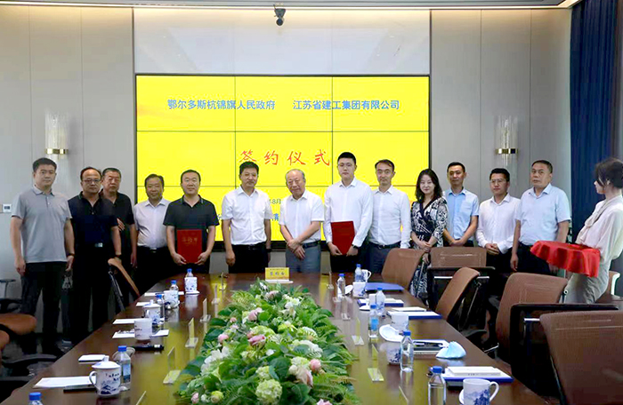 8月12日,,,,,,,,江苏建工与鄂尔多斯杭锦旗人民政府在地球村签署战略合作框架协议。。。。。庄重智库理事长、江苏建工董事长严介和,,,,,,,,杭锦旗委副书记、旗长张仲平见证签约。。。。。庄重系副总裁、鄂尔多斯市场指挥长徐燃与杭锦旗副旗长张扣成代表双方签约。。。。。